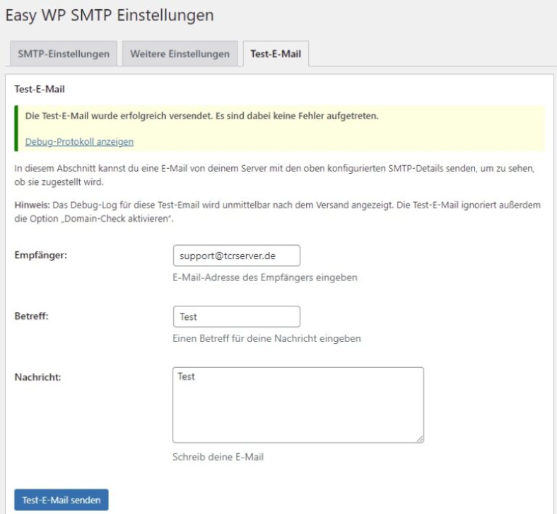 Ab jetzt werden alle E-Mails die WordPress versendet, auch E-Mails von Kontaktformularen usw. direkt über den E-Mail Server versendet und korrekt mit den ganzen Signaturen wie SPF, DKIM und Co. versehen.