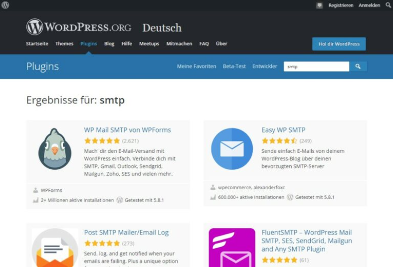 Die einzige saubere und zuverlässige Lösung für E-Mail Probleme mit WordPress ist die Installation eines SMTP Plugins, welches E-Mails über Ihren E-Mail-Server versendet und nicht über Ihren Web-Server, wie es WordPress per Default vorsieht.
